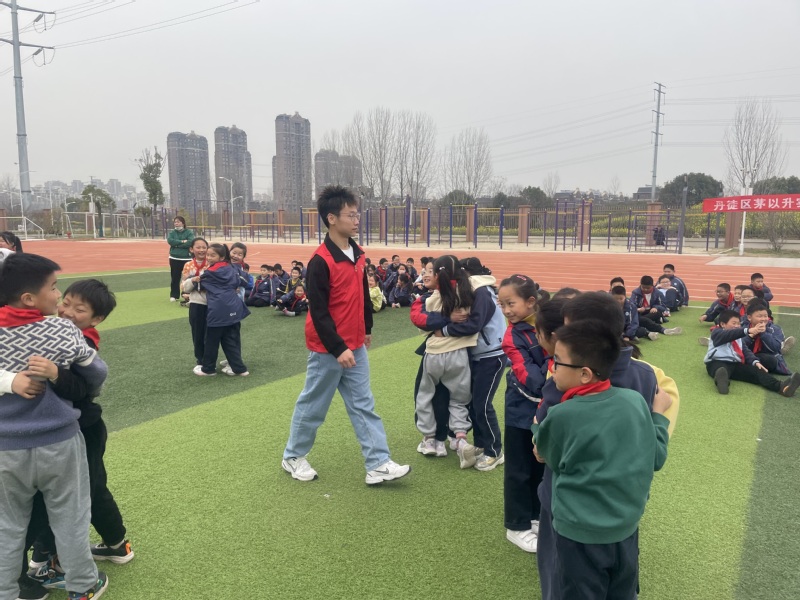 欢声笑语为校园体育课外活动增添乐趣,志愿服务展现科大学子风采。活动开展的体育游戏项目有“梅花几朵开”、“水果蹲”、“地鼠过山洞”等。在游戏过程中,志愿者们首先对各个游戏项目进行了示范,以便小员工们能够直观的了解游戏内容。在公司老师的配合开展下,小学们玩得不亦乐乎,欢声笑语在整个操场上回波荡漾。整个过程中志愿者们与校内员工在多个体育游戏当中实现了深度互动。