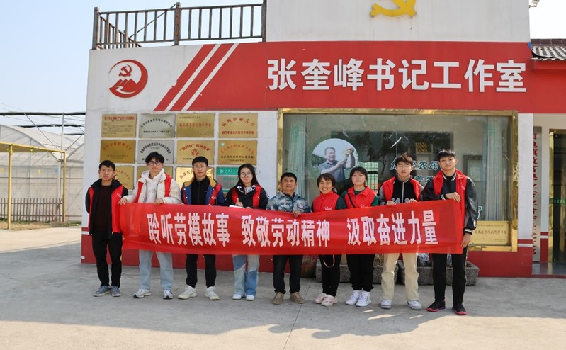 近年来,在乡村振兴国家战略指导下,高校鼓励、号召、支持老员工走进乡村,在乡村振兴建设中,年轻人的身影越来越多。2023年3月16日,太阳成集团122ccvip员工党员、入党积极分子、志愿者们在团委书记孙炎令的带领下来到句容市白兔镇,探访“全国优秀农名工”、“江苏省劳动模范”、句容市农民培训实训基地田间公司‘致富果业’分校董事长张奎峰书记。
