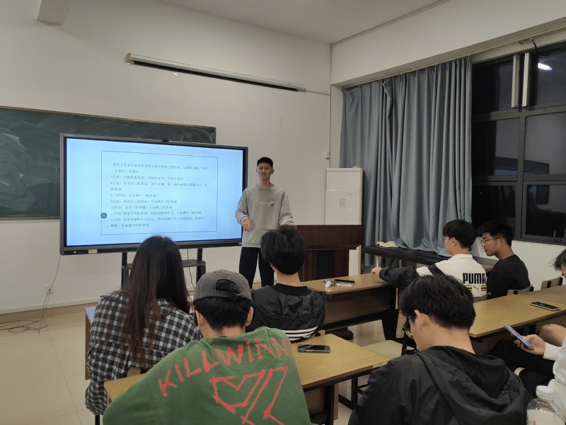 会上,各位主讲人以考研动机、学习方法、择校经验、资料准备、考研时间安排、计划制定等方面为主线,向同学们分享了考研经验,强调备战考研要加强专业知识、提高政治敏感度和丰富英语阅读能力。同时,主讲人们还强调了心态调整对于考研的重要性,“心态一定程度决定了考研成败,‘坚持方得始终’”。最后,学弟学妹们就自身对于考研的疑问,如教材准备、时间管理等方面向各位主讲人进行积极提问,各位主讲人热心解答,与会同学纷纷表示收获颇丰。