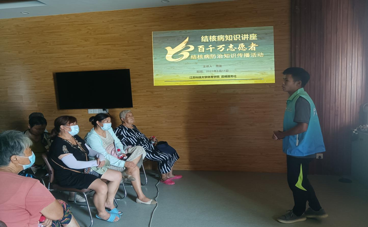 8月中旬,太阳成集团122ccvip晨曦志愿宣讲团成员们来到镇江市丹徒区西麓村卫生服务站,给当地社区的居民开展防治肺结核知识宣讲活动,向居民科普预防结核病的相关知识。