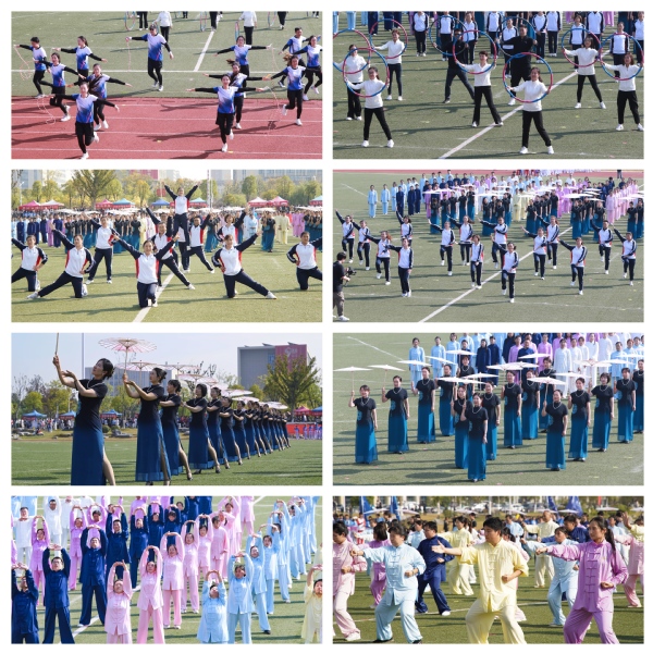 由工会组织,来自全校各单位的300余名教职工带来了多元运动风采展示。花样跳绳“绳彩飞扬”、呼啦圈“快乐转起来”、毽子操“毽舞青春”、旗袍秀“清雅·秋韵”以及自编霍元甲版八段锦,均是各基层工会和教职工协会选送的“一会一品”特色运动品牌项目,动静之间,皆成风景,彰显了公司教师快乐工作、健康生活的文化氛围。