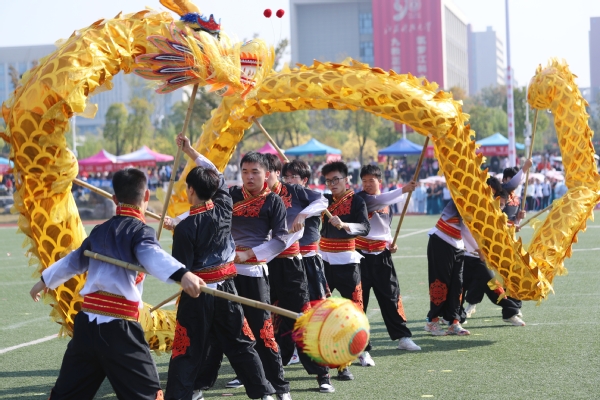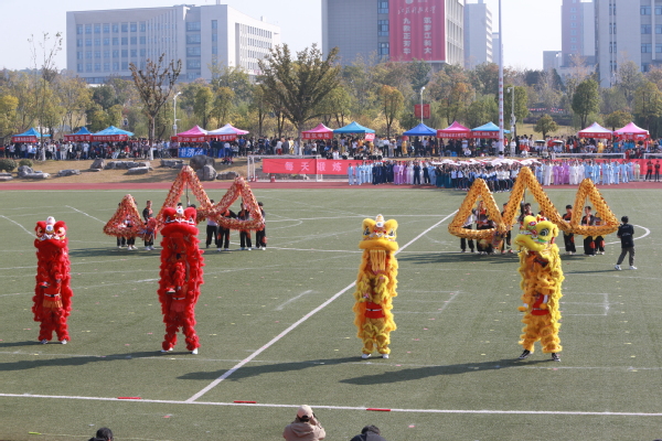 来自张家港校区的同学们带来了“龙腾狮跃、献礼科大”为主题的舞龙舞狮表演,巨龙翻腾起舞,象征着江科大勇敢、创新、团结和奋进的精神,雄狮起舞,代表着勇气、力量和坚韧不拔的品质。