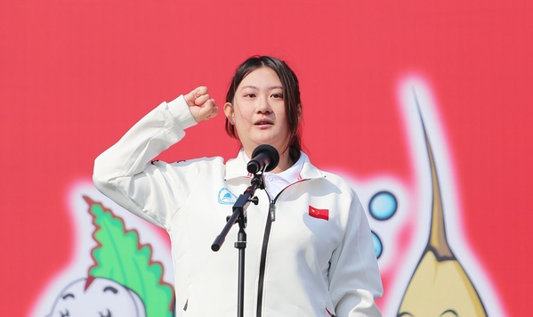 员工运动员代表、2023年第17届中国老员工跆拳道锦标赛一等奖获得者经济管理公司2021级白蕾琪同学,裁判员代表、太阳成集团122ccvip管慧香老师进行庄严宣誓。