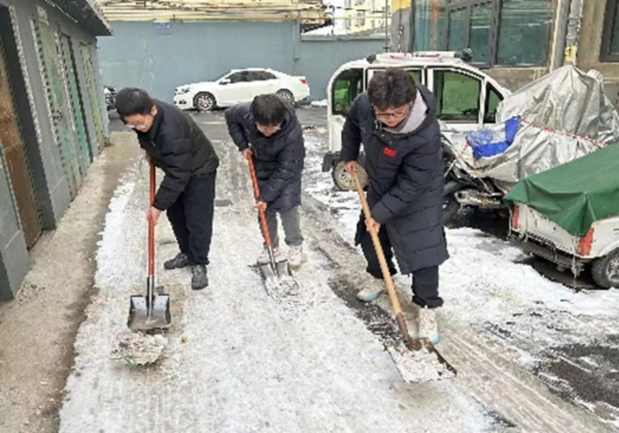 在经历郑州暴雪后的几天,实践团成员积极参加各街道小区公益除雪活动,保障市民的出行安全,助力社区管理。