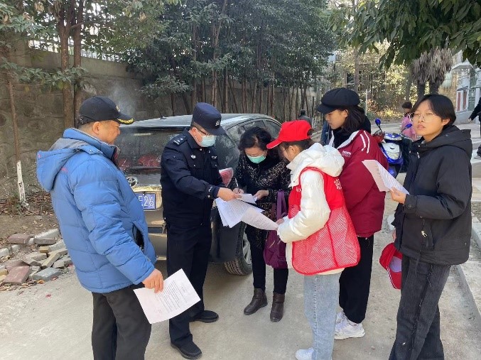 2122114031团支部员工韩庄艳等同学协助公安部门在社区进行普法宣传活动。在社区内,协助警察同志讲解电信诈骗的本质,向居民揭露各类电信诈骗的伎俩及防范措施,提醒广大群众保护好个人隐私,安装反诈app。提高居民网络诈骗的应对能力,增强居民对电信诈骗的防范意识。