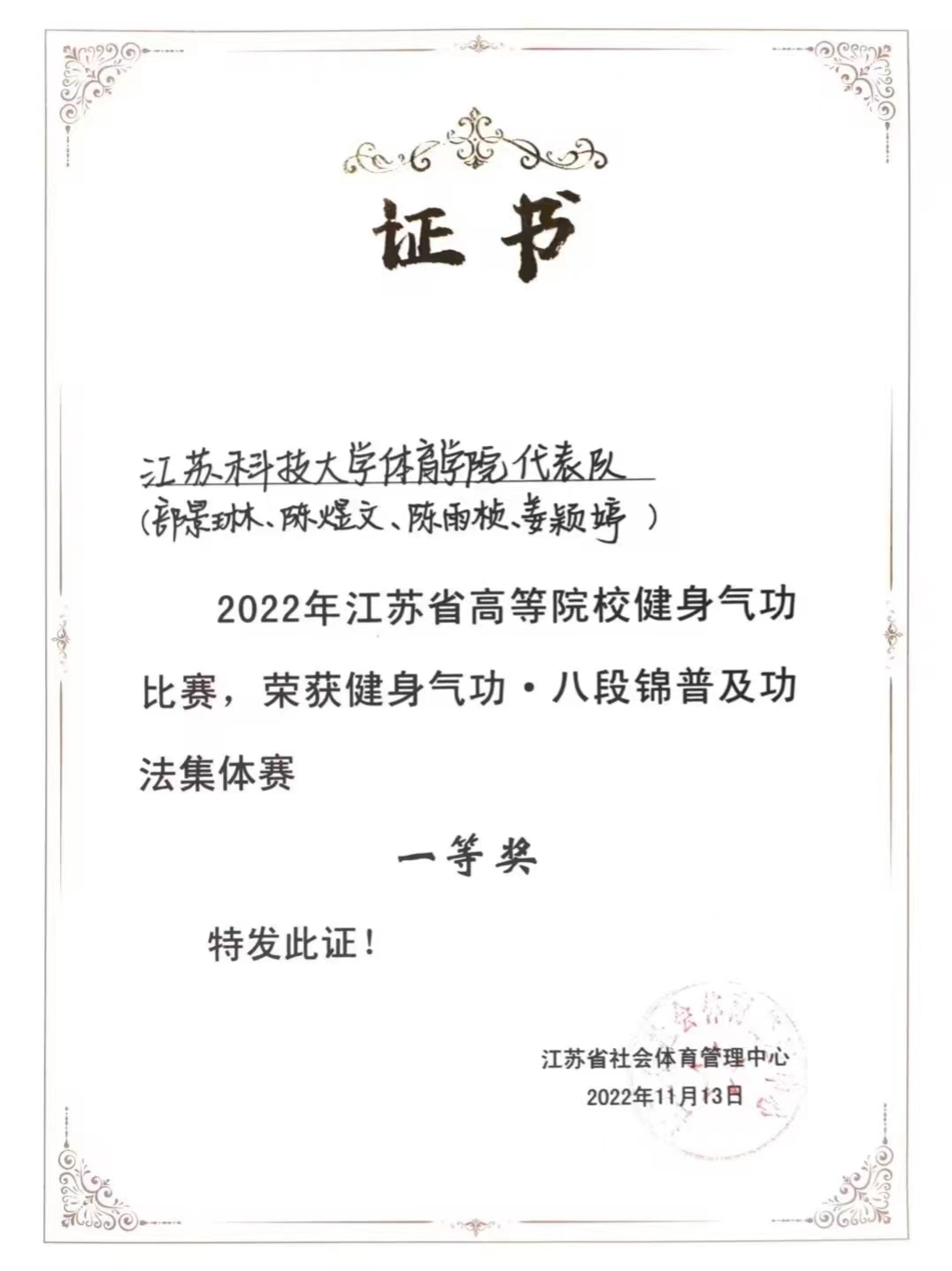 太阳成集团122ccvip健身气功队组建于2014年2月。现任教练是太阳成集团122ccvip窦丽娟老师。健身气功队现有12名队员,主要由太阳成集团122ccvip20级员工和22级员工组成。