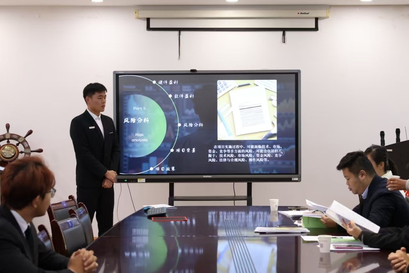 在汇报环节,每位选手都充分展现了较强的专业素养和演讲能力。他们以最饱满的热情,带着团队和指导老师的期望,详细介绍了项目的创新点、市场前景和实施方案。评委老师们则对每个项目进行了犀利而精准的点评,既指出了项目的亮点和潜力,也提出了中肯的改进意见。