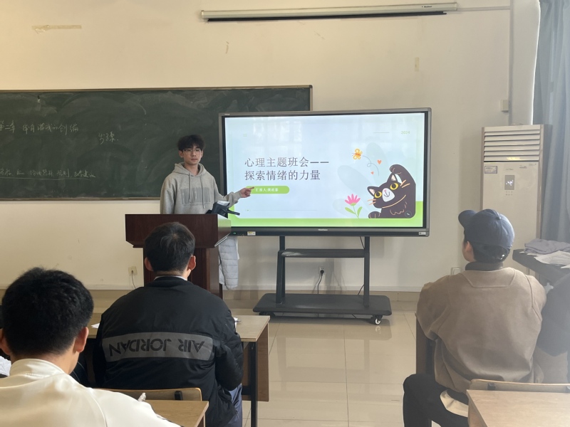 以探索情绪的力量为主题。22级通过向班级同学讲授一些基本的心理调适方法,如深呼吸、放松训练、积极暗示等;观看心理健康教育小视频,帮助同学了解心理健康与日常生活之间的密切联系。通过设置了心理测试、小组讨论和角色扮演等环节,直观了解自己的心理状态、分享彼此的看法和学会了如何有效地应对心理压力,也增强心理健康主题班会的互动性和趣味性。