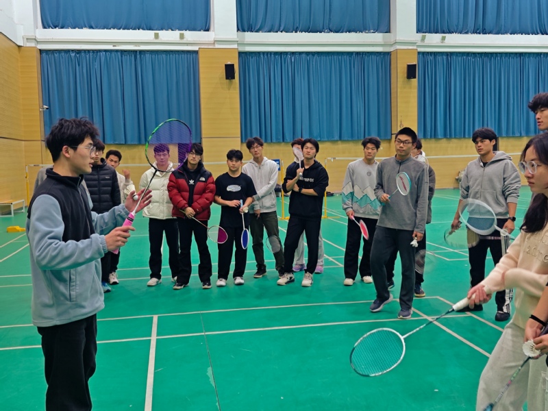 热身结束后,活动进入了技术讲解环节。傅建瑞同学担任了本次活动的技术指导。他凭借扎实的羽毛球基础和丰富的比赛经验,为大家详细讲解了正手击打高远球的技术要领。从握拍姿势、站位选择、转身发力到击球点控制,傅建瑞同学一一进行了示范和剖析。他耐心细致的讲解,让在场的师生们受益匪浅。
