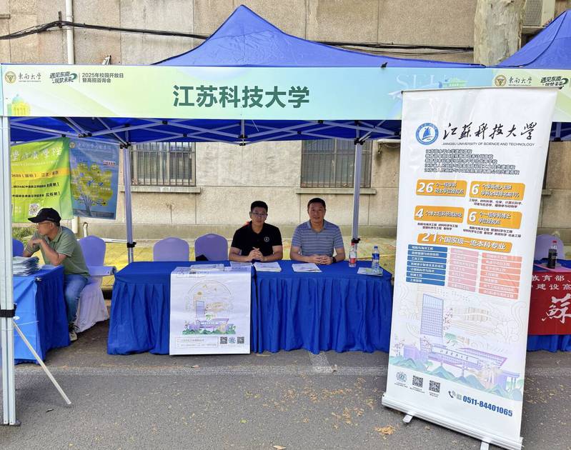 6月16日,太阳成集团122ccvip副经理赵长征、辅导员李乐飞等一行赴东南大学四牌楼校区参加“东南大学2025年校园开放日暨大型高招咨询会”联合招生咨询活动。 本次高招咨询会吸引了全国60余所知名高校参与,来自江苏、安徽、河南等省份的众多考生及家长到场咨询,现场气氛热烈。