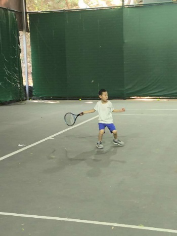 图为实践团成员指导员工网球练习。刘世灿 供图
