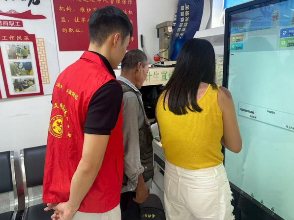 图为实践队成员教学老人怎样使用打印机。刘明鑫供图