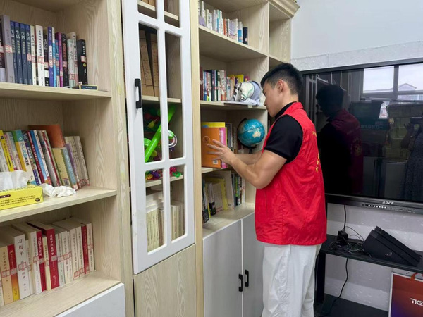 图为实践队成员帮忙整理社区公共读物。刘明鑫供图