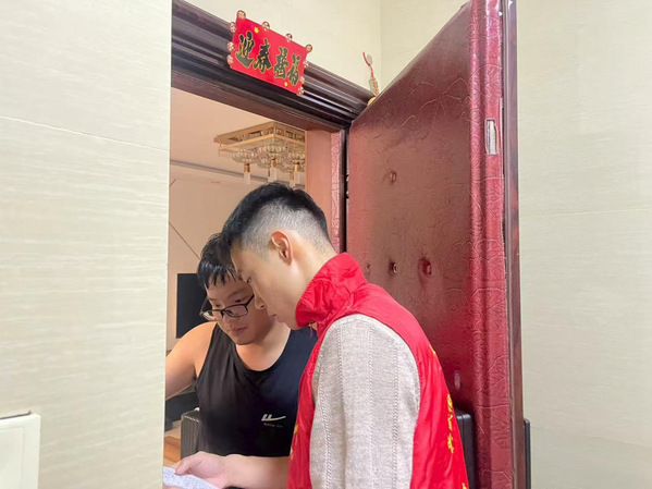 图为实践队成员在社区工作人员的指导下了解居民信息。刘明鑫供图