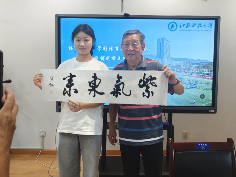 在互动环节,刘教授向同学们展示书法作品,并向同学们赠送字画,同时针对员工的提问,刘教授一一给予了耐心细致的解答,其睿智幽默的语言赢得了阵阵掌声。
