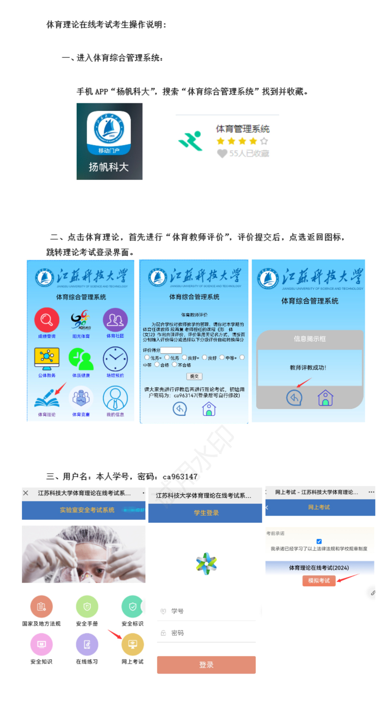 4.体育理论考核前需要在体育管理系统中完成本学期体育任课老师评教。